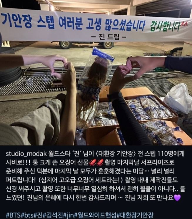 “기안84 사장님, 지예은 씨, 모든 손님, 그리고 아미와 시청자분들께