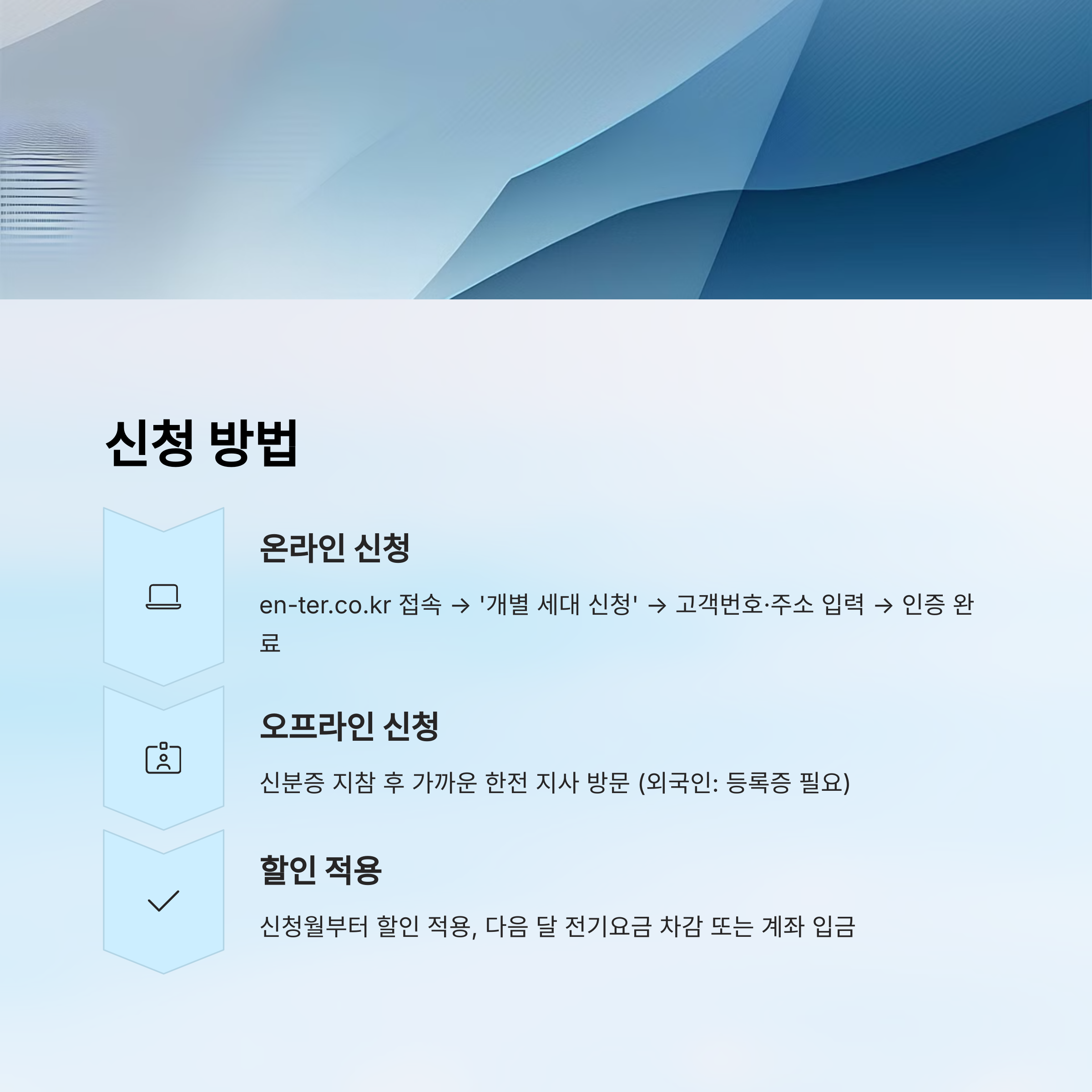 - 신분증 지참 후 가까운 한전 지사 방문