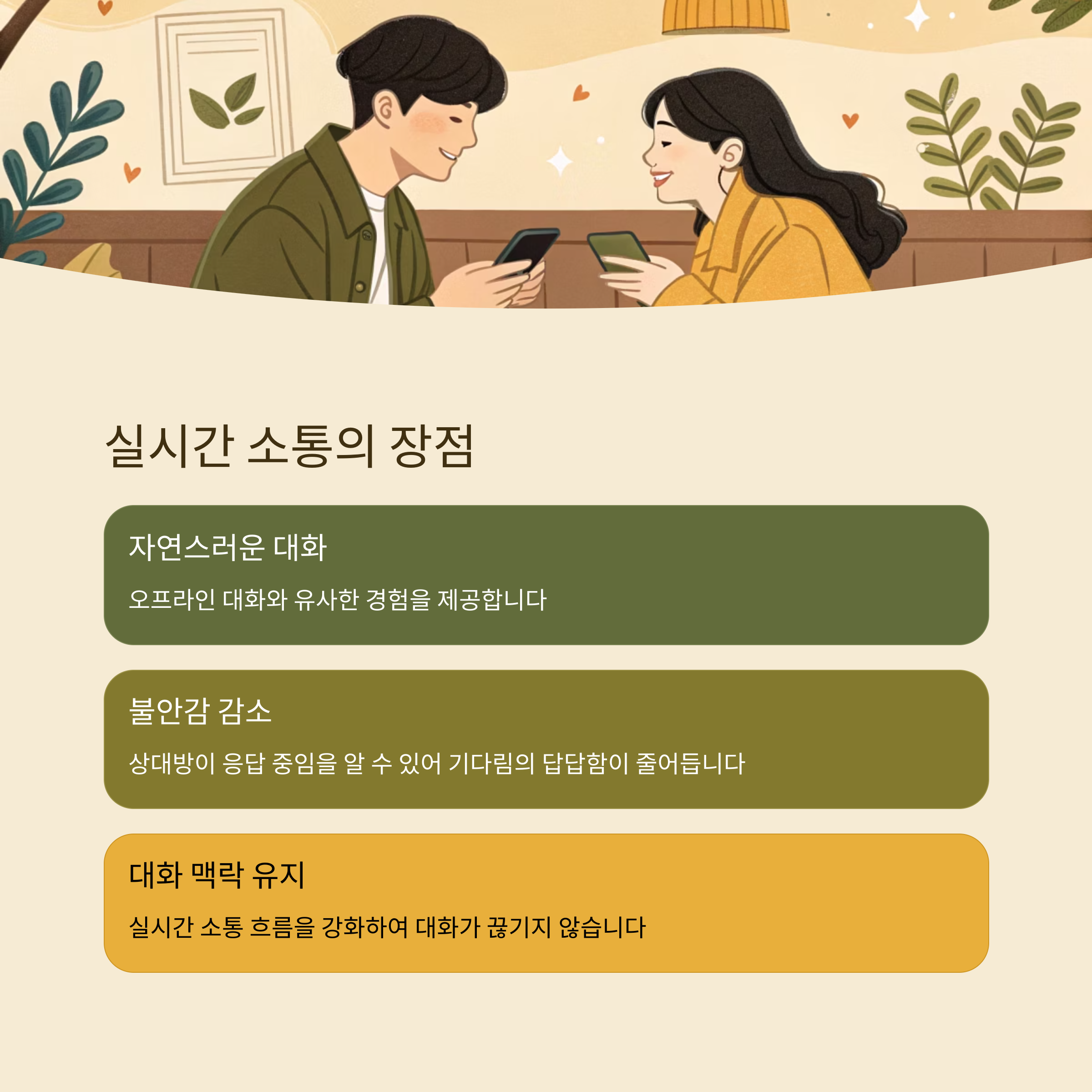 오프라인 대화와 유사한 느낌을 제공하는 것이 핵심입니다.