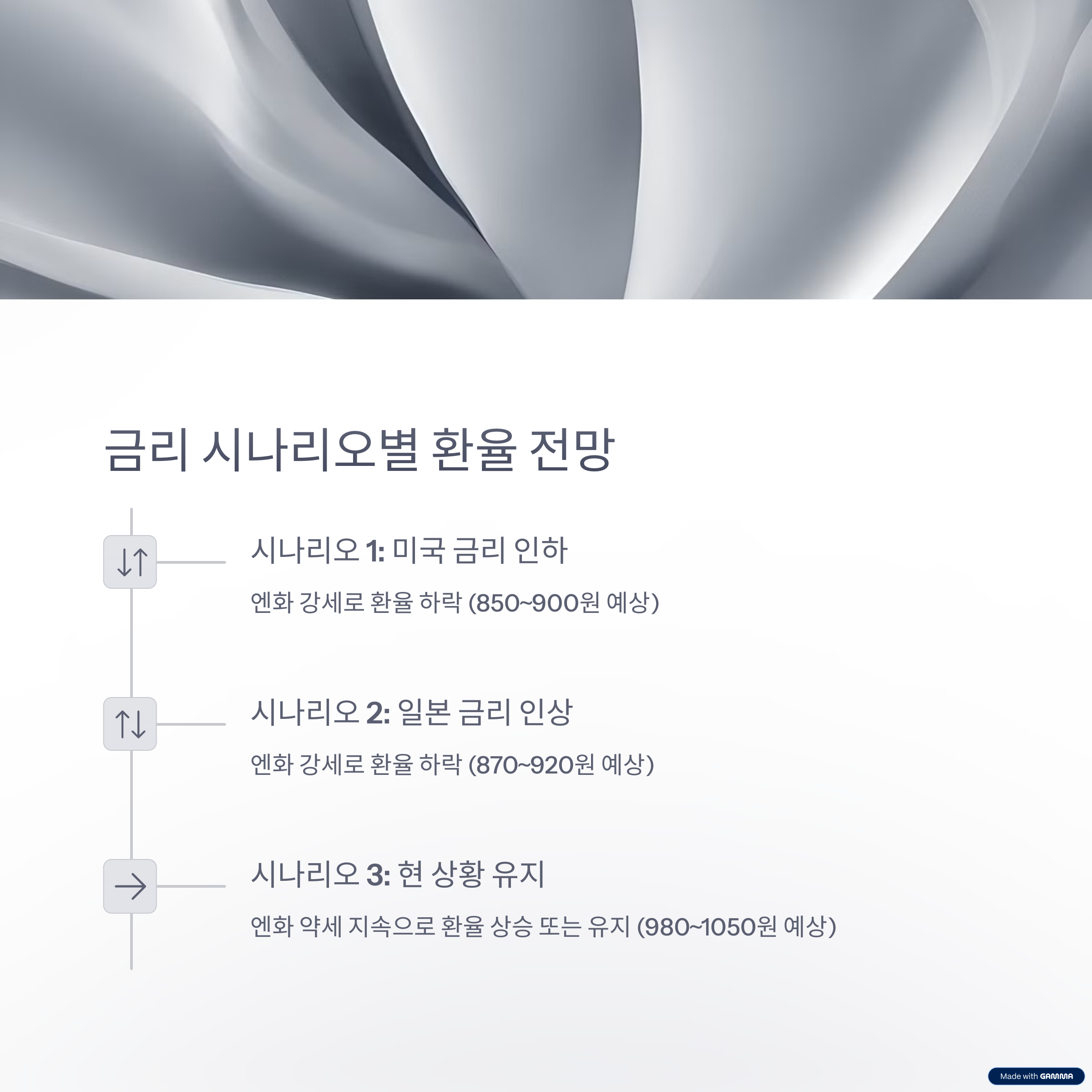 | 금리 동결 | 135~150엔 | 950~1,000원 |