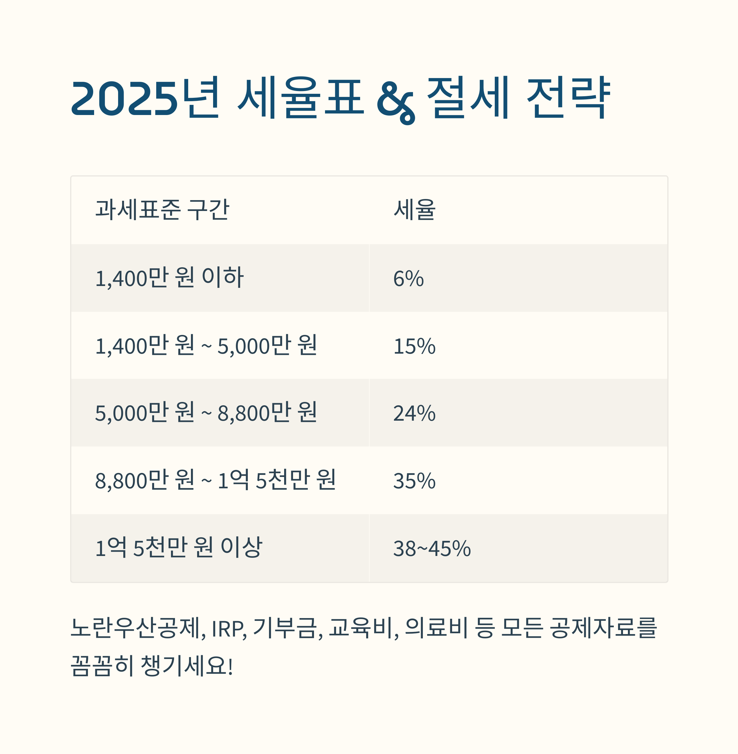 2025년 적용 세율표 & 절세 전략 (표 포함)