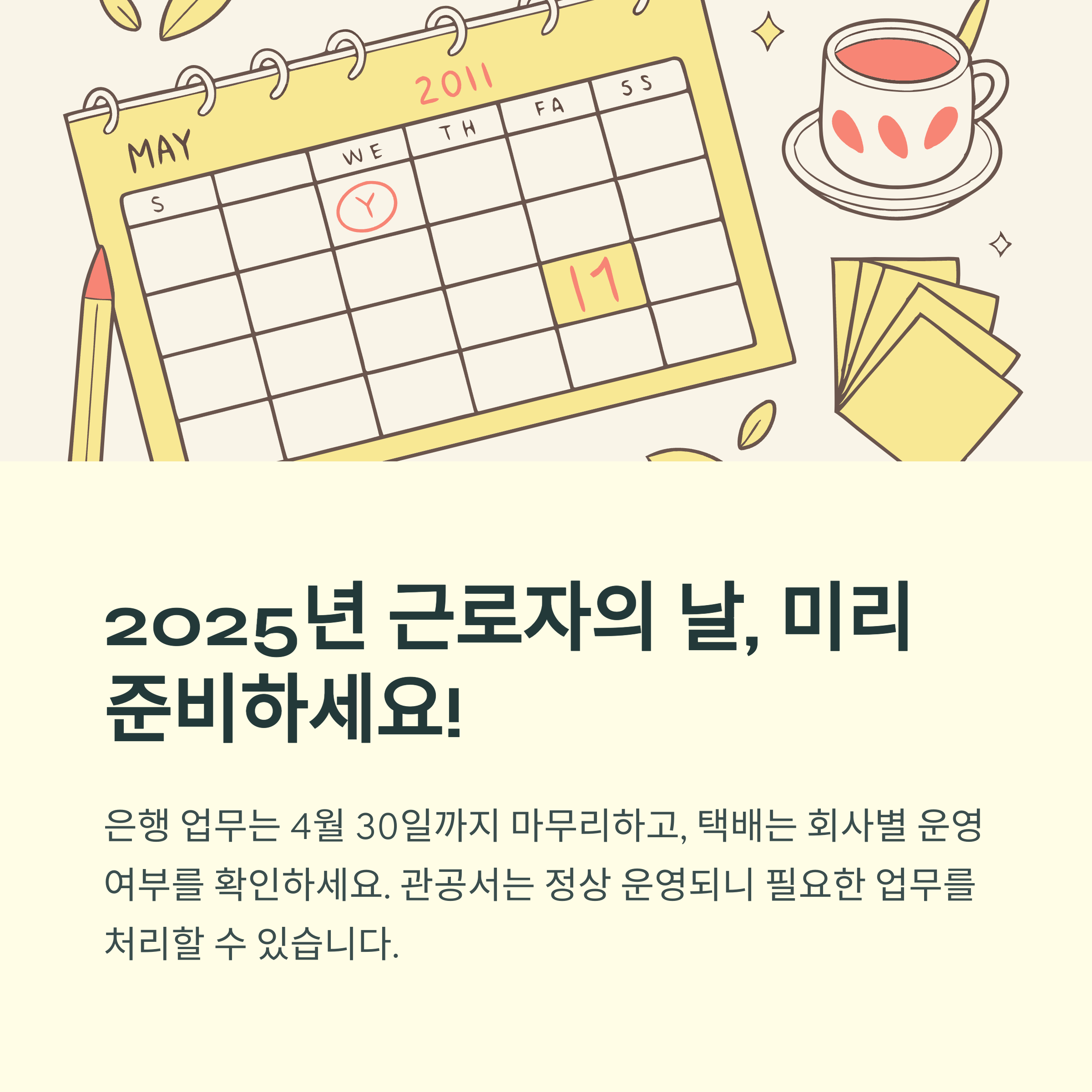 2025년 근로자의 날 서비스 운영 한눈에 보기 (표 정리)