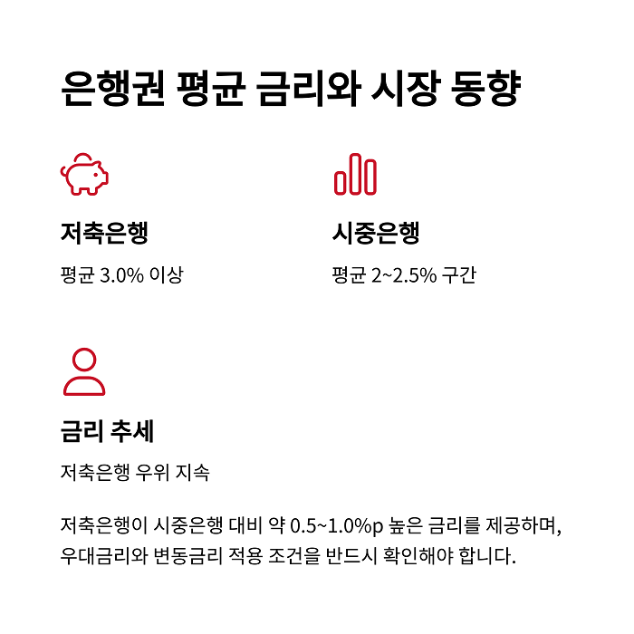 2025년 4월 기준, 저축은행 평균금리는 연 2.96%로 집계되었습니다.